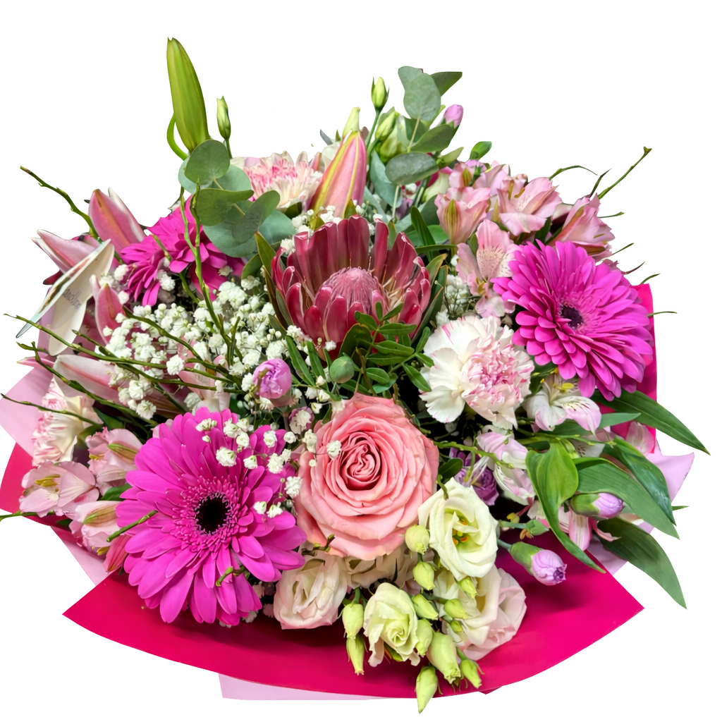 Očarujúca zmes sýtych a jemných odtieňov ružovej a bielej farby, ktorá vytvára skutočne luxusný a nezabudnuteľný vizuálny zážitok. Táto kytica spája klasickú eleganciu s exotickým šarmom a je ideálnym darom na špeciálne príležitosti, ako sú narodeniny, výročia, poďakovanie alebo jednoducho pre radosť.